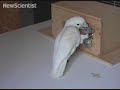 Попугай открывает замок, состоящий из 5 элементов, которые нужно открыть последовательно: вытащить штифт, открутить болт и т.д.